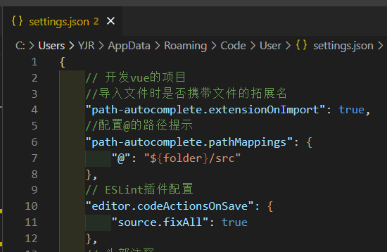 中加入"prettier.configPath": "C:\\Users\\YJR\\.prettierrc",