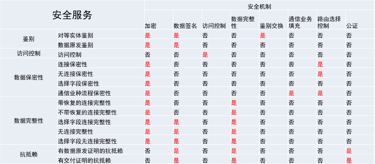参照开放系统互联安全体系结构,lSO 7498-2标准,其核心内容是:为保证异构计算机进程之间远距离交换信息的安全,定义了系统应当提供的5种安全服务和8种安全机制,确定了安全服务与安全机制之间的关系,以及在ISO参考模型中安全服务和安全机制的配置。