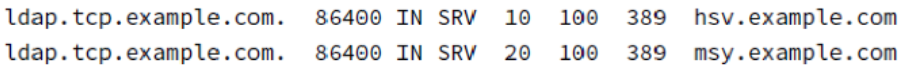 Service Record:SRV记录什么计算机提供什么样的服务信息。SRV记录一般是Microsoft活动目录设置时的应用。DNS可以独立于活动目录,但是活动目录必须有DNS才能正常工作其中第一行 10 表示优先级 100 表示权重,当优先级相同时,选择权重高的,389是端口号