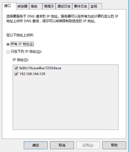 转发器:列出DNS服务器,无法解析域名时转发给谁