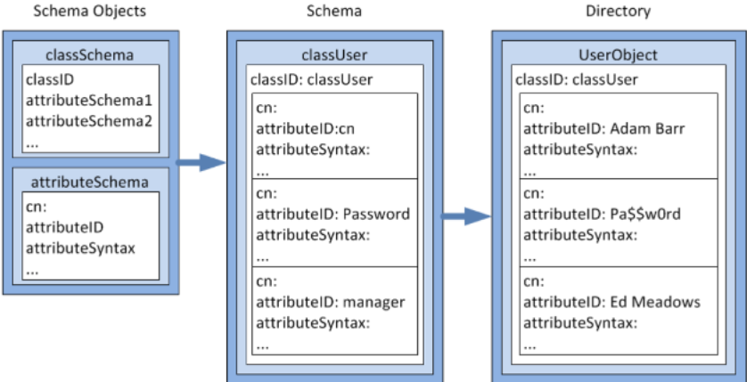 - 一组规则,即架构,定义目录中包含的对象和属性的类别、这些对象的实例的约束和限制及其名称的格式。