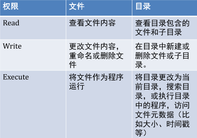 则表示,不具有相应的权限,因为文件和目录是不同的所以其rwx的含义也不同,如下图