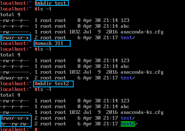 如果我们想要修改新建目录的默认权限,我们可以修改umask值后再进行创建文件