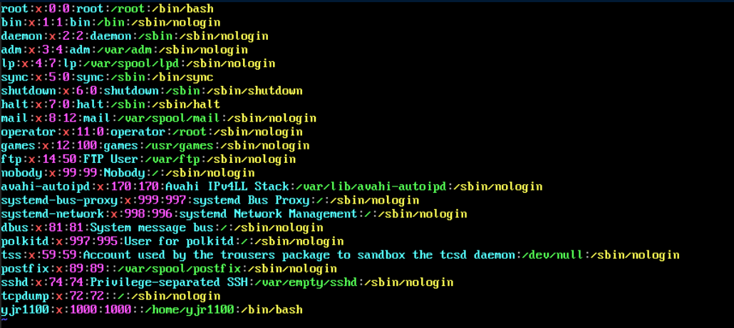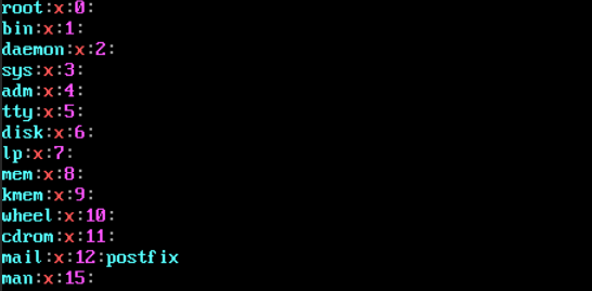 这个文件每一行有7列,中间用冒号隔开,分别是 用户名:密码:用户id:组id:解释性描述:家目录:shell