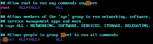 第二行是说 允许 wheel 组的用户执行sudo中的任何命令