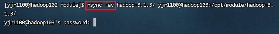 rsync -av hadoop-3.1.3/ yjr1100@hadoop103:/opt/module/hadoop-3.1.3/
