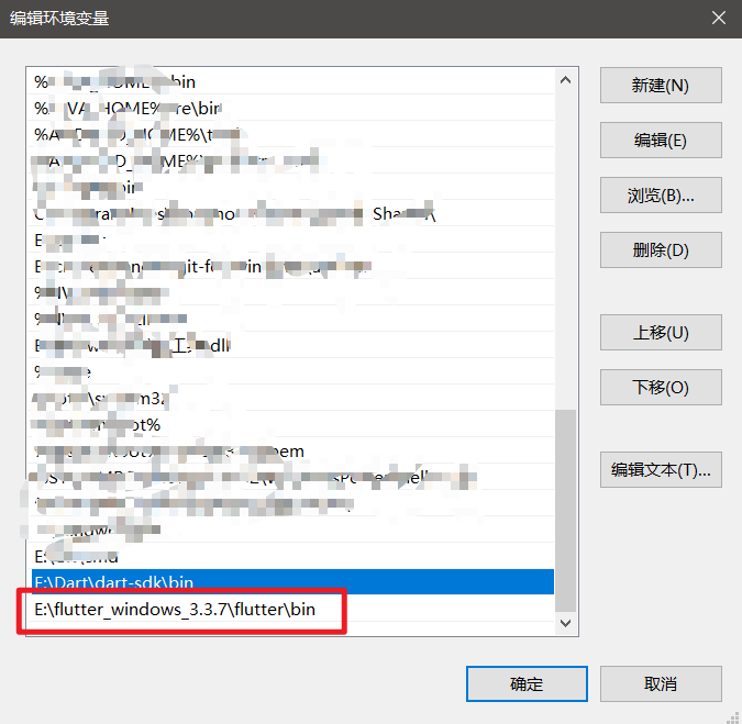 下载完成后是一个压缩包,解压到想解压的位置,然后配置环境变量,吧flutter 的bin目录添加进环境变量添加好后,我们在命令行输入 `flutter --version` 看到版本信息说明好了