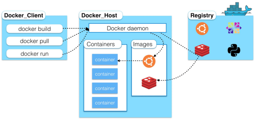 Docker是一个Client-Server结构的系统,Docker守护进程运行在主机上,然后通过Socketi连接从客户端访问,守护进程从客户端